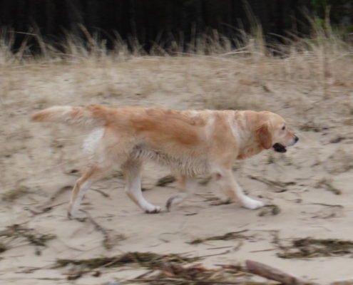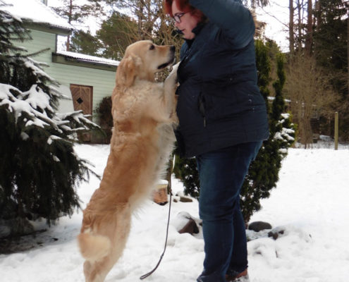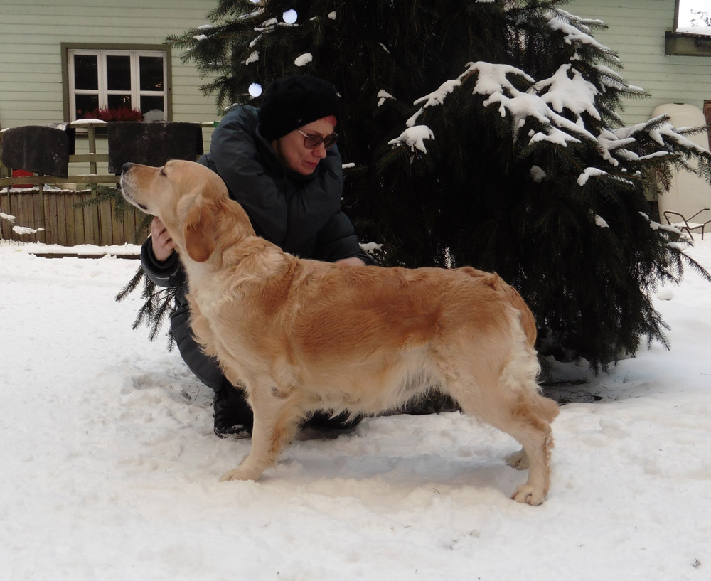 Suusi sees only good in people, she wants to be close to people all the time, every moment. Undoubtedly she is the most obedient of our gang. Bold, happy, rapidly adjusting, eager to run after each thrown stick or dummy – that’s our Suusi, that’s what we look for in a Golden retriever. In addition to Suusi’s lovely, golden wavy coat.