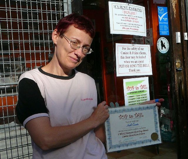 Tõnu, Inga, Heili ja Monty perenaine Elen Perolainen on käinud händlerkoolitusel Inga Siili ja Gerard O’Shea juures ning võivad teie koeri näituseks ette valmistada ja neid näidata.
